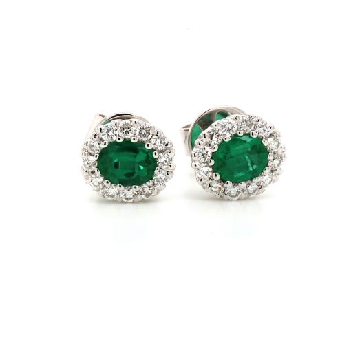 LEXI – 18ct White Gold Emerald & Diamond Stud Earrings