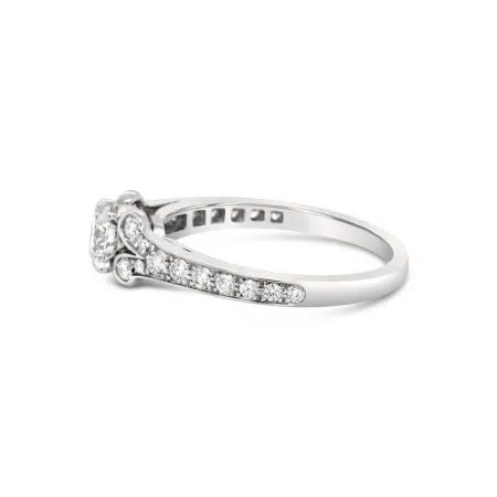 The MNJ Ladies Collection captures Mark Nathan’s signature style and elegance, featuring the stunning Morgan diamond engagement ring. Set in a four claw setting in the centre one round brilliant cut diamonds flanked by eleven round diamonds pave set on either side. Handcrafted in Sydney with natural round brilliant cut diamonds and exceptional craftsmanship.